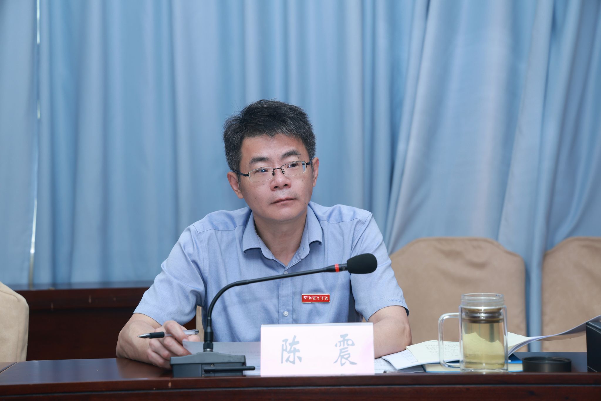 陈震强调,要持续深化思想认识,坚持把工作做在前面、把功夫下在平时,下好“先手棋”、打好“主动仗”。要强化理论武装,加强正面引导,严格阵地管理。要健全完善协同机制,打破部门壁垒,构建上下联动、左右协同、齐抓共管的工作格局,形成“1+1>2”的协同效应。要聚焦重点难点,打好网络意识形态工作的“攻坚战”,提升管网治网能力,提升舆情引导水平,加强网络素养教育,以钉钉子精神攻坚克难,坚决守住网络意识形态安全防线。